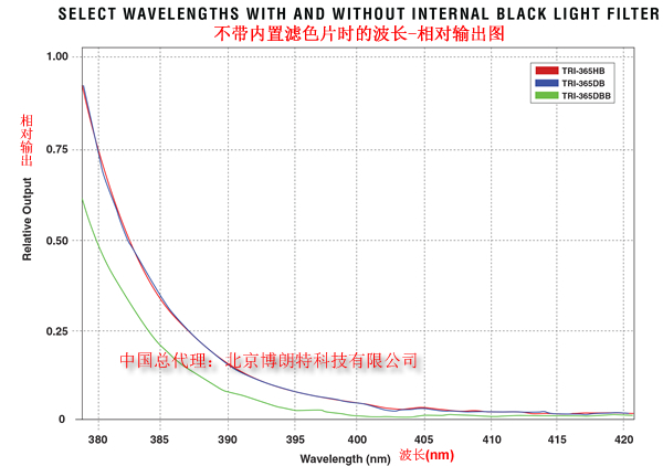 TRI-365DB及TRI-365DBB紫外输出强度分布图